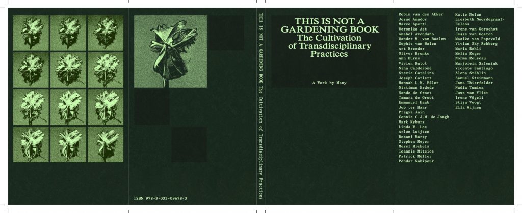 Group 1 developed their project around Transdisciplinary Education Methods to arrange the process of multi-stakeholder collaboration and to stimulate mutual understanding. Based on their practical and theoretical knowledge the group produced an edited volumed titled This is not a Gardening Book: The Cultivation of Transdisciplinary Practices (ISBN: 8-74152-732-6). The book brings together eight essays written by artists, scholars, and educators from a wide variety of disciplinary and institutional backgrounds. In addition to the essays, the book contains an AI-generated image layer and glossary entries written by students from the various institutions. The image layer is informed by keywords that are derived from the essays.