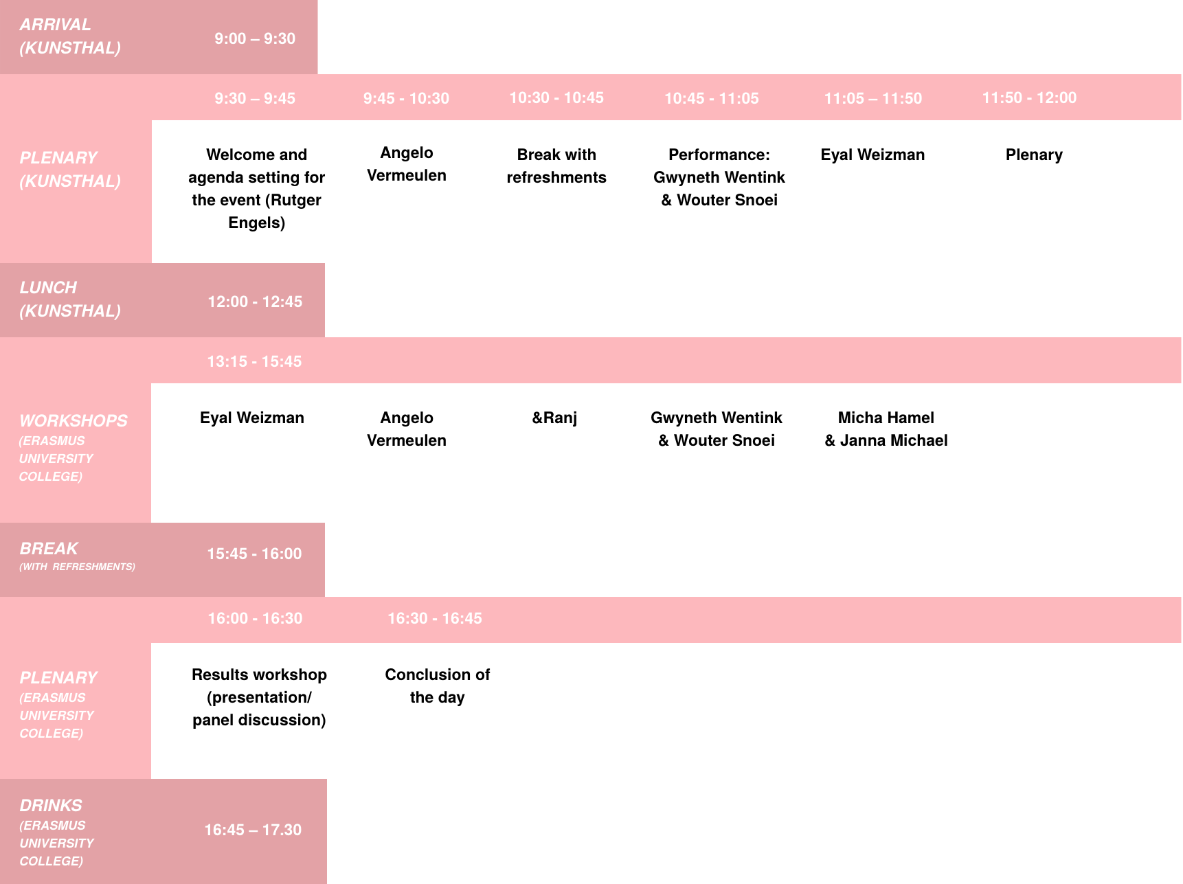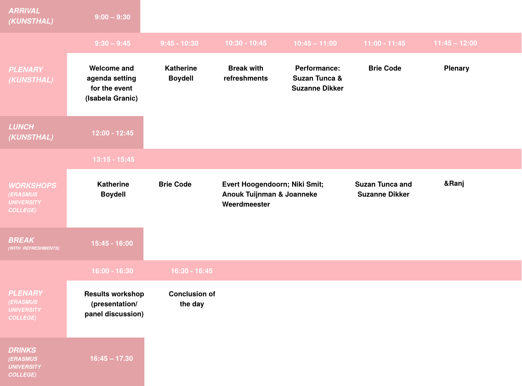 The ‘Transdisciplinary Compositions – Contemporary Challenges, towards collaborative practices in the Arts & Sciences’-conference is organized by the National Science Foundation, Radboud University Nijmegen and the Rotterdam Arts & Sciences Lab (RASL, http://2.rasl.nu); a collaboration between Erasmus University Rotterdam, the Willem de Kooning Academy (university of the visual arts) and Codarts (university of the performing arts).