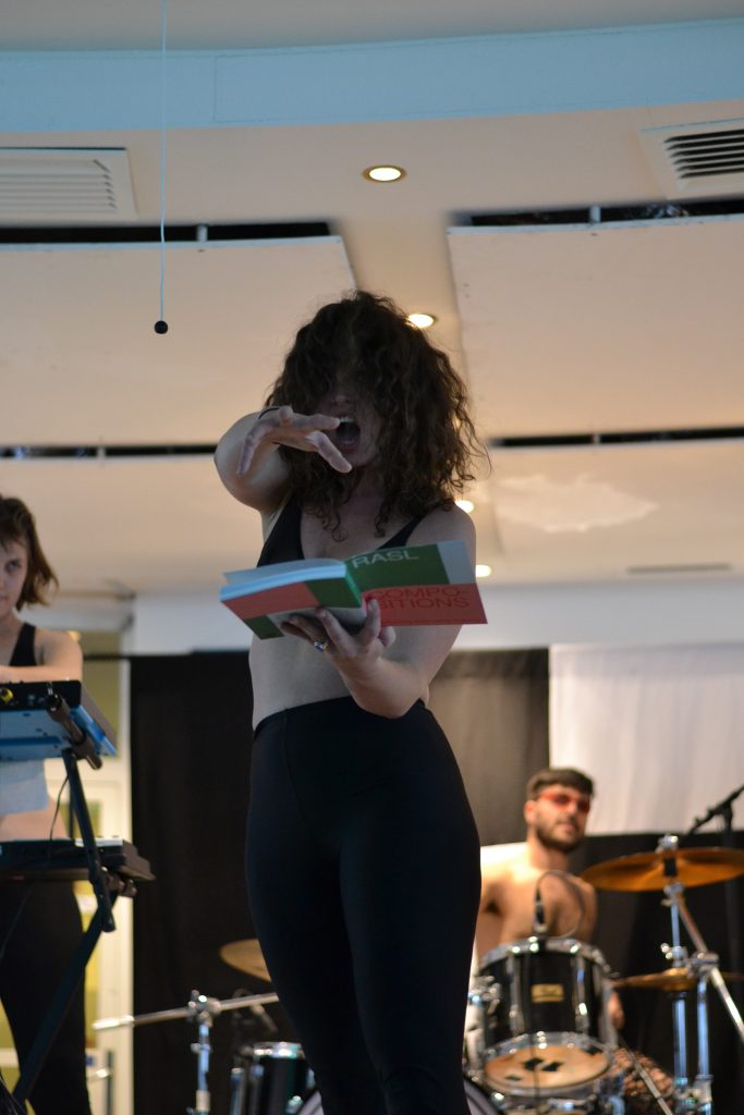 Club Gewalt, Rotterdam based musical theatre “sing better than Mariah Carey”, closed the publication launch in wild, ritualistic style. During which RASL Compositions went through a baptism of drums, guitar, mooing and mythical monologues, through an immersive performance with “overactive salivary glands”, and a clear love for trans-disciplinary practice.